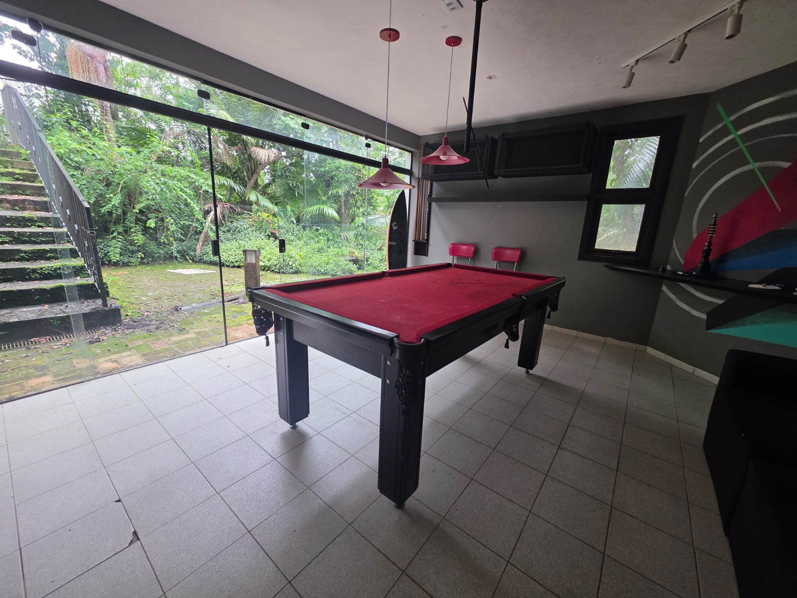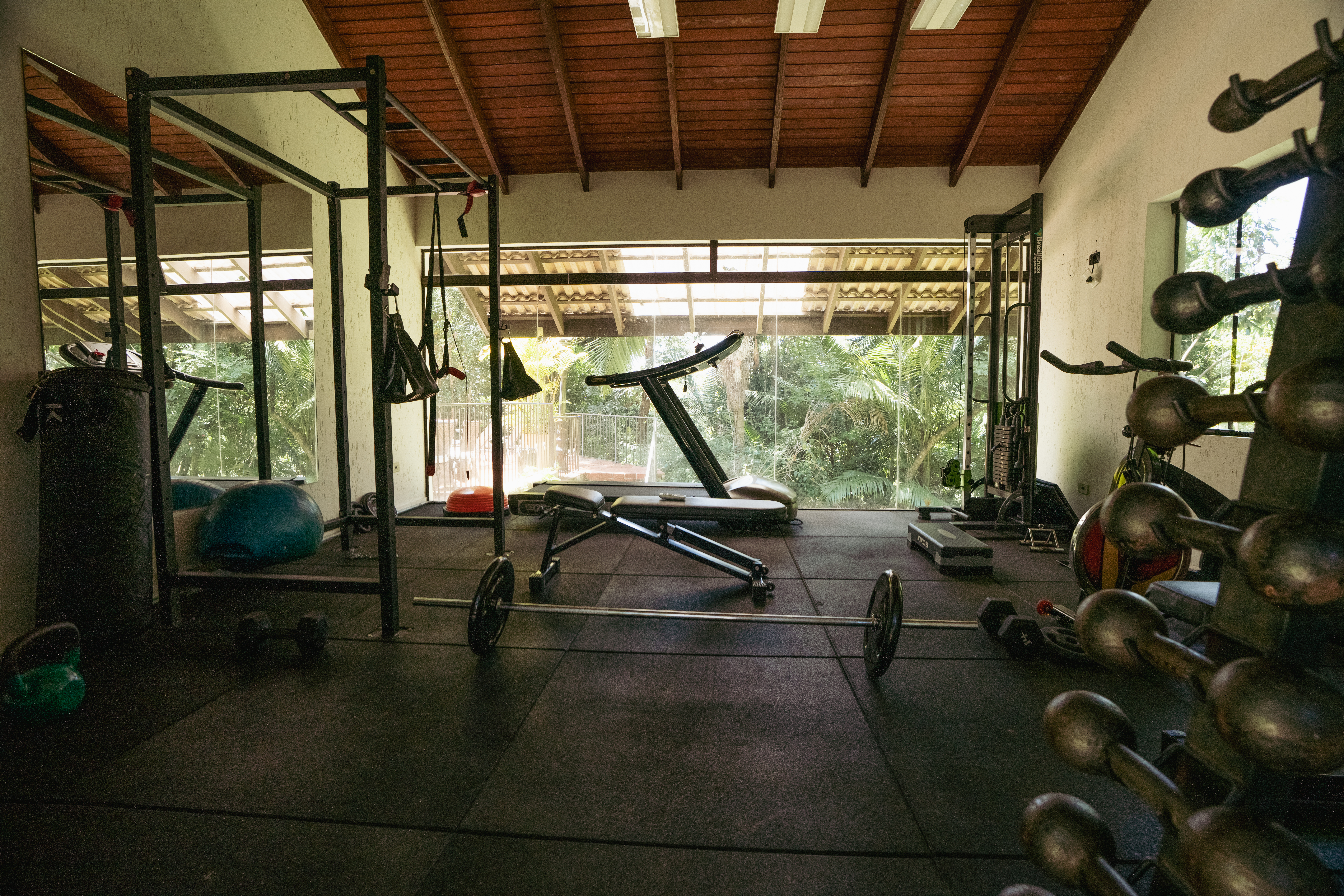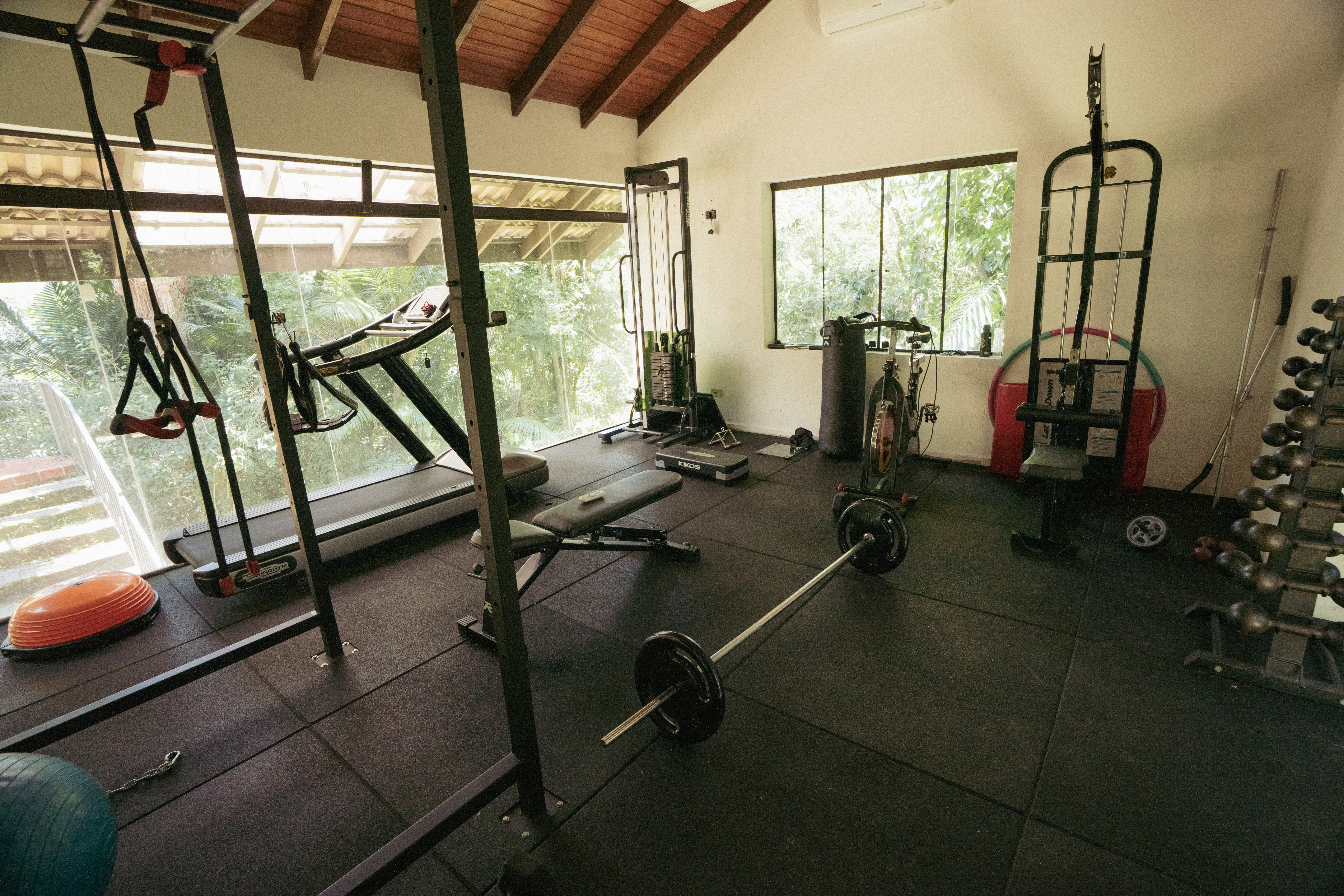 Complementam a casa um escritório reservado, academia, salão de jogos com banheiro e ambientes de apoio bem distribuídos, garantindo funcionalidade sem abrir mão da estética.