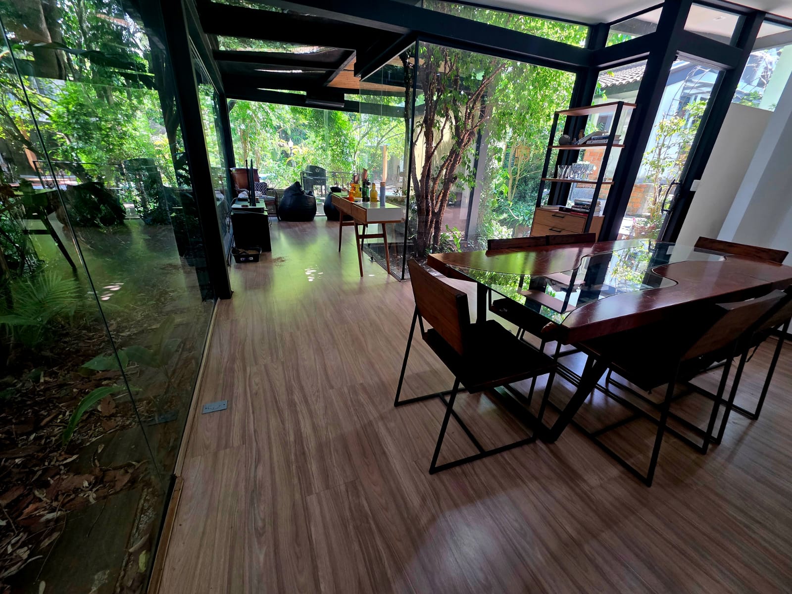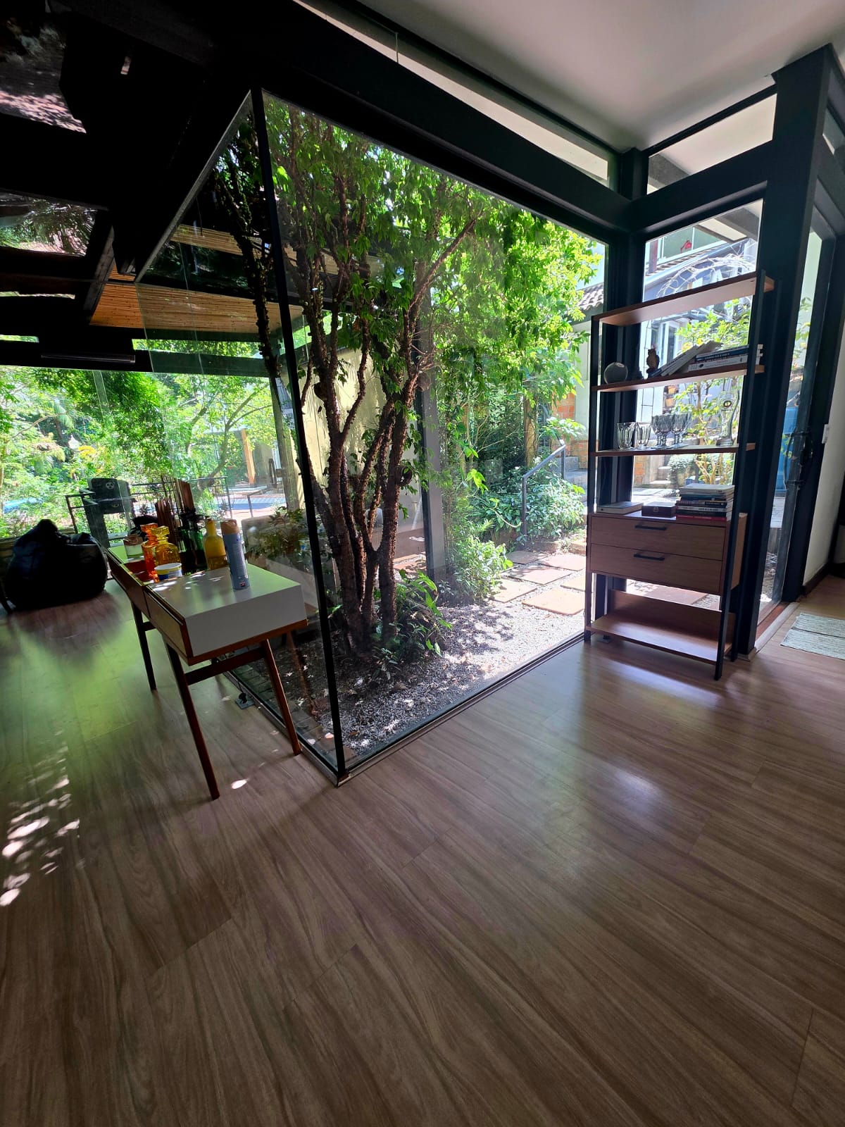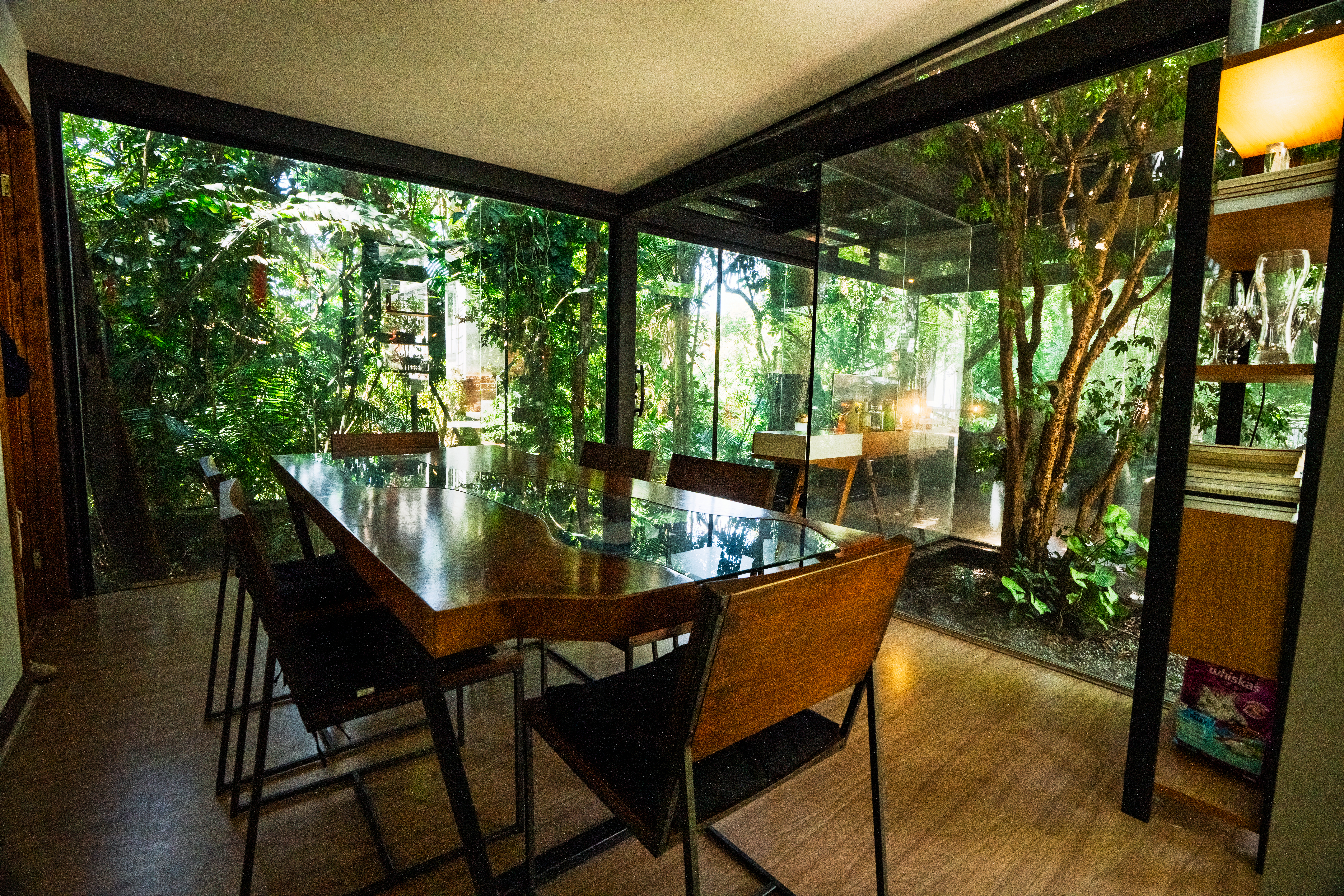 Como um diferencial raro, a propriedade conta com um loft anexo independente, de arquitetura contemporânea, marcado pela combinação de estrutura metálica, madeira e grandes planos de vidro. Um espaço com identidade própria, ideal para hóspedes, familiares, estúdio criativo ou segunda morada dentro do mesmo terreno.