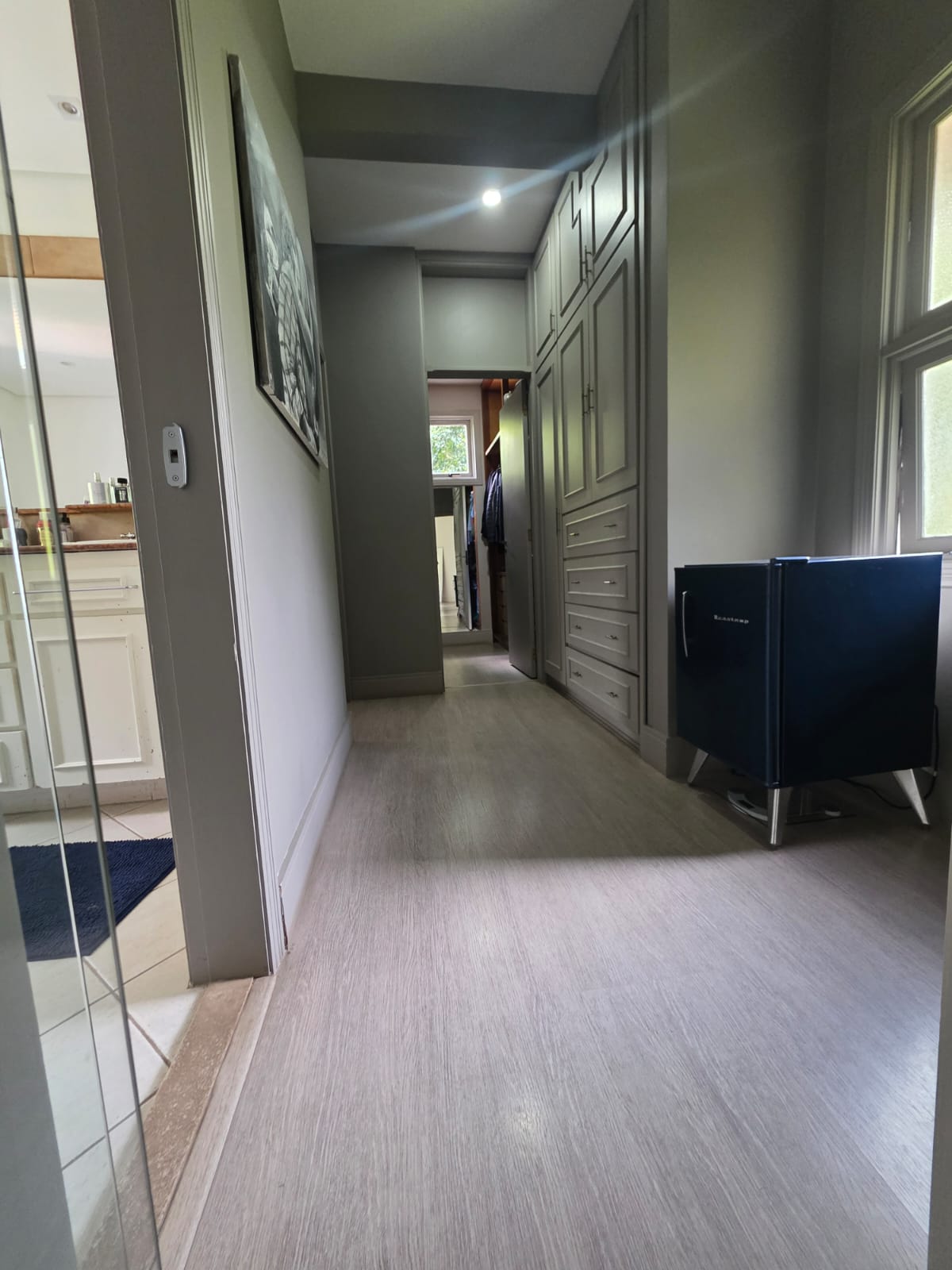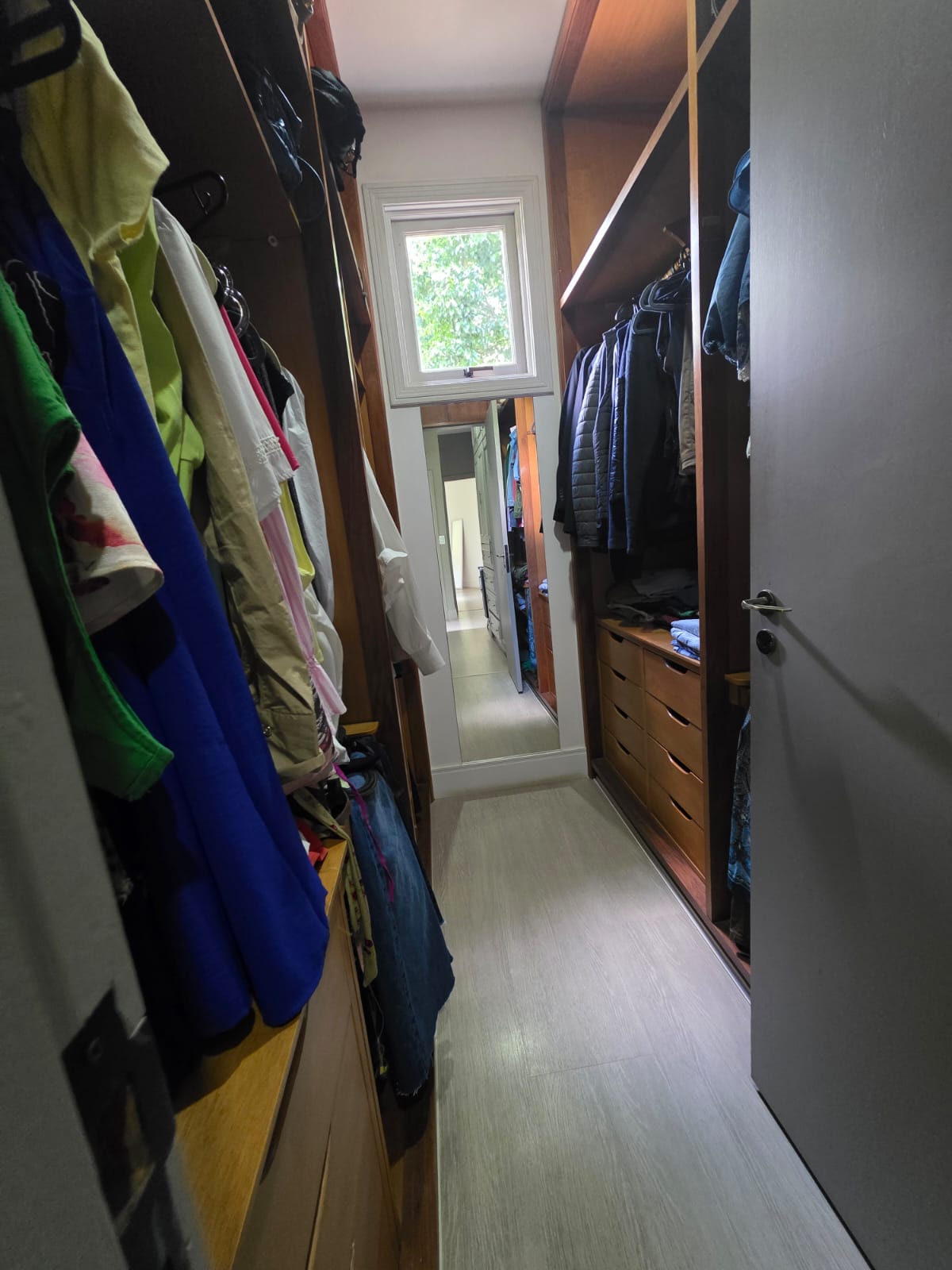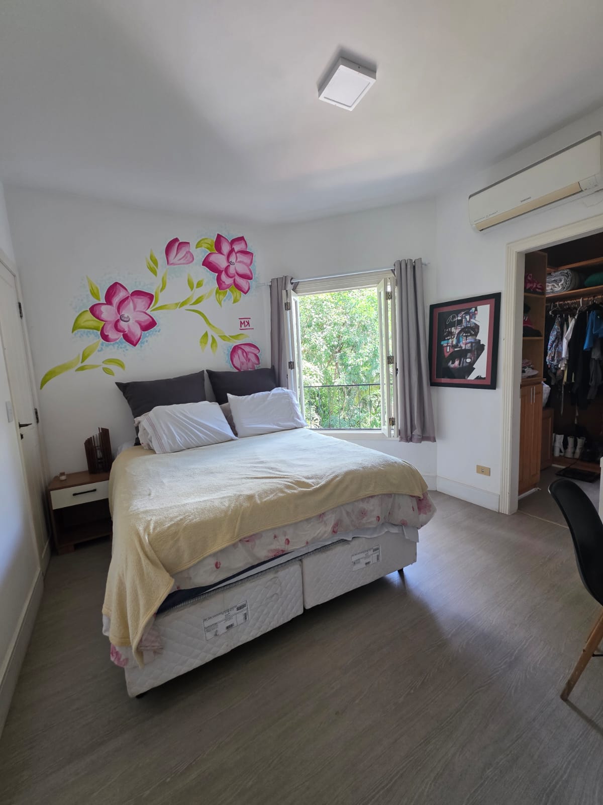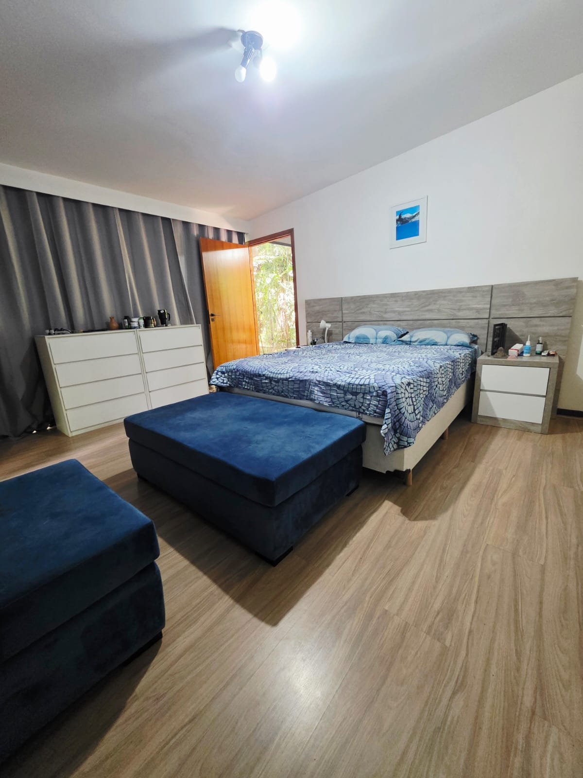 A área íntima abriga 4 suítes, todas com excelente iluminação natural e conexão com o verde. A suíte master se destaca pelo conforto, com closet, banheiro com banheira e varanda privativa voltada para a piscina e a mata. Há ainda uma suíte configuração inteligente que hoje integra duas suítes, criando uma área íntima com sala de TV e escritório privativo — totalmente reversível para o layout original, se desejado.